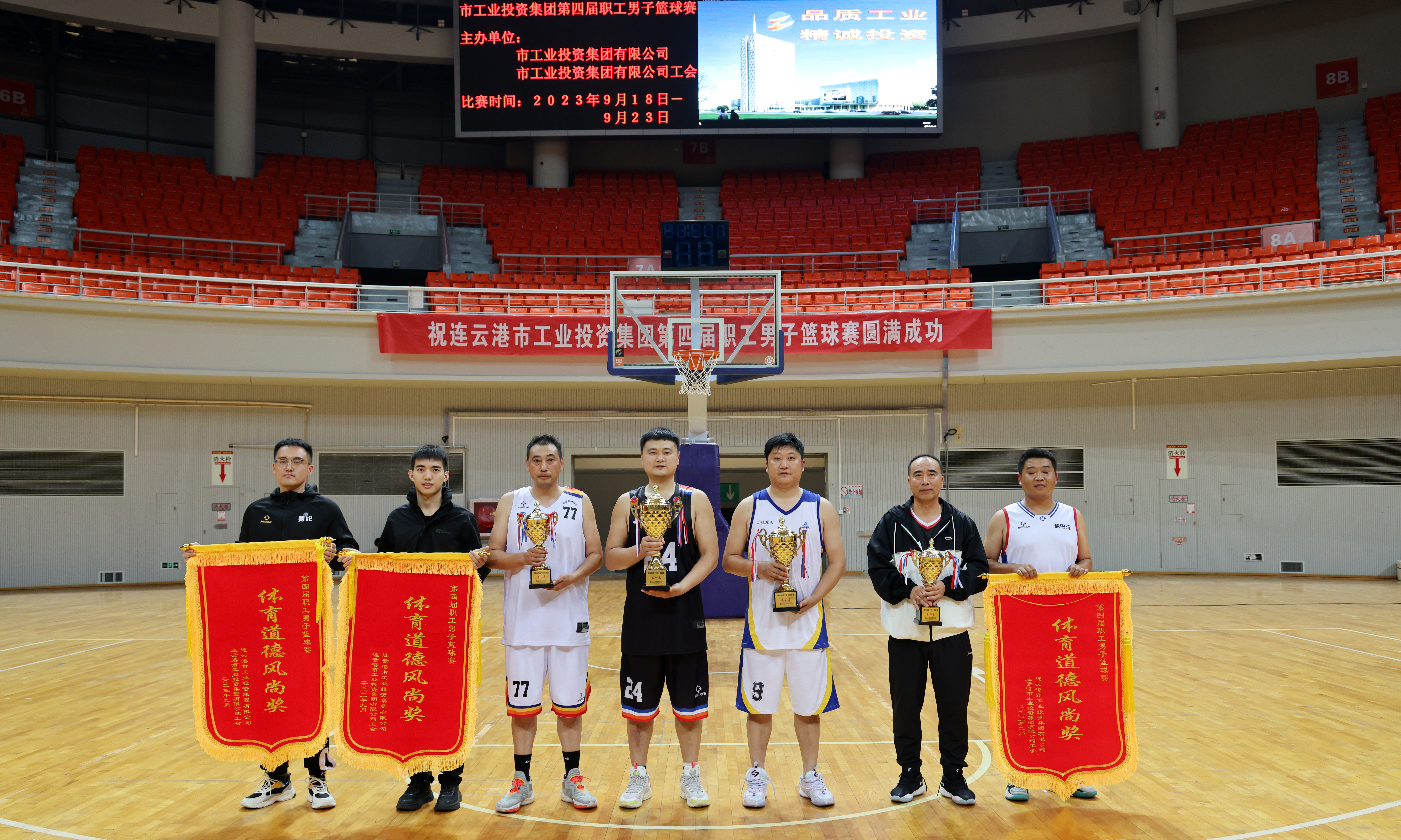 在市體育中心籃球館進(jìn)行的前四名比賽中,徐圩投資公司代表隊(duì)、灌西投資公司代表隊(duì)、利海氯堿公司聯(lián)隊(duì)和臺北投資公司代表隊(duì)經(jīng)過一天的爭奪,分獲前四名。供電公司、青口投資公司、氨綸公司三支代表隊(duì)獲體育道德風(fēng)尚獎(jiǎng)。集團(tuán)公司領(lǐng)導(dǎo)戴鴻鳴、劉承志出席閉幕式,并為獲獎(jiǎng)代表隊(duì)頒獎(jiǎng)。