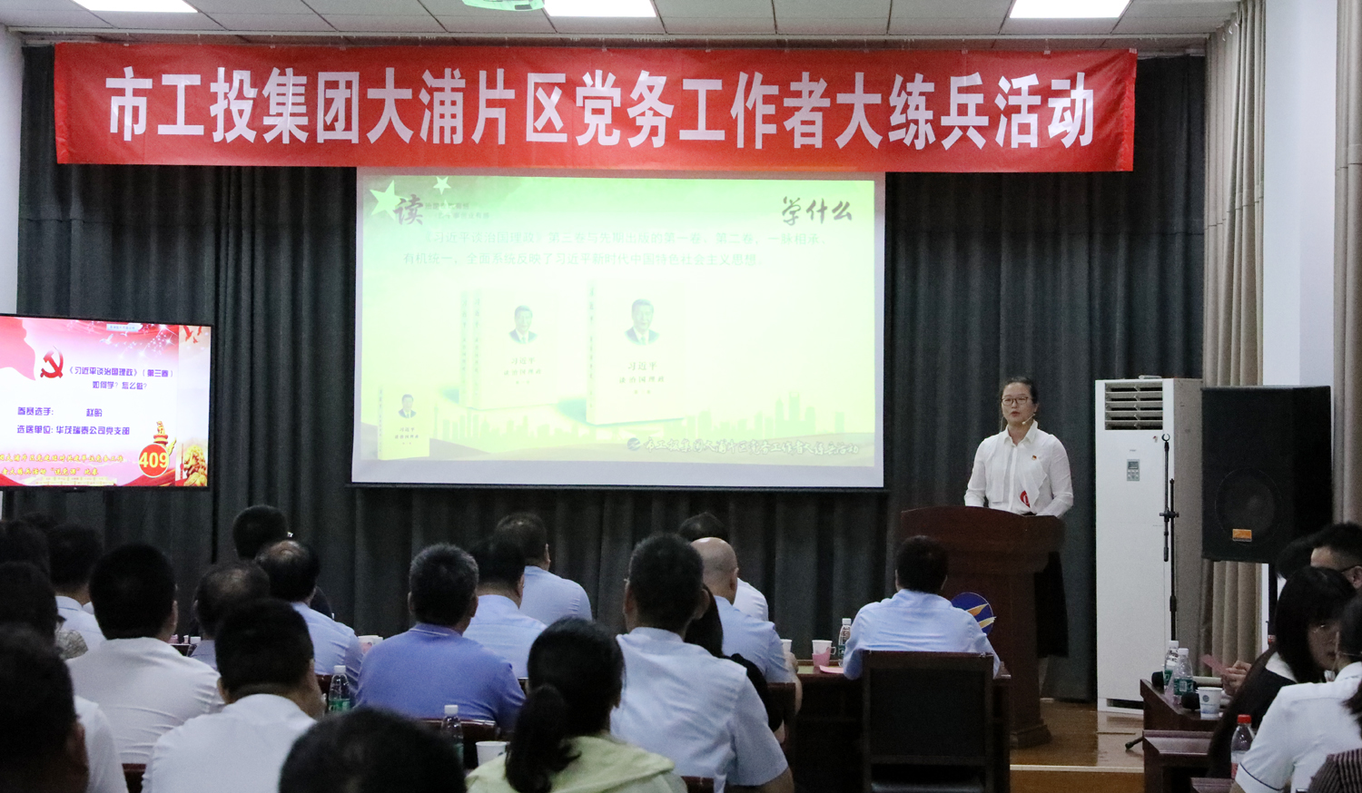 為進(jìn)一步提高基層黨務(wù)工作者“說(shuō)、寫、做”能力,不斷提升基層黨建規(guī)范化建設(shè)水平,9月4日下午,集團(tuán)公司黨委在神特新材料公司開展大浦片區(qū)黨建結(jié)對(duì)共建單位黨務(wù)工作者大練兵活動(dòng)。市委組織部黨員教育中心主任許志青、市國(guó)資委黨群工作處處長(zhǎng)閆超群、集團(tuán)公司黨委副書記戴鴻鳴等出席活動(dòng)。 本次大練兵活動(dòng)立足“以考強(qiáng)兵,破解理論不精;以講練兵,確解業(yè)務(wù)不足”,由公文撰寫和現(xiàn)場(chǎng)“說(shuō)黨課”比賽兩部分組成,來(lái)自大浦片區(qū)黨建共建單位9個(gè)黨支部的10名基層黨務(wù)工作者同臺(tái)競(jìng)技,展示風(fēng)采。