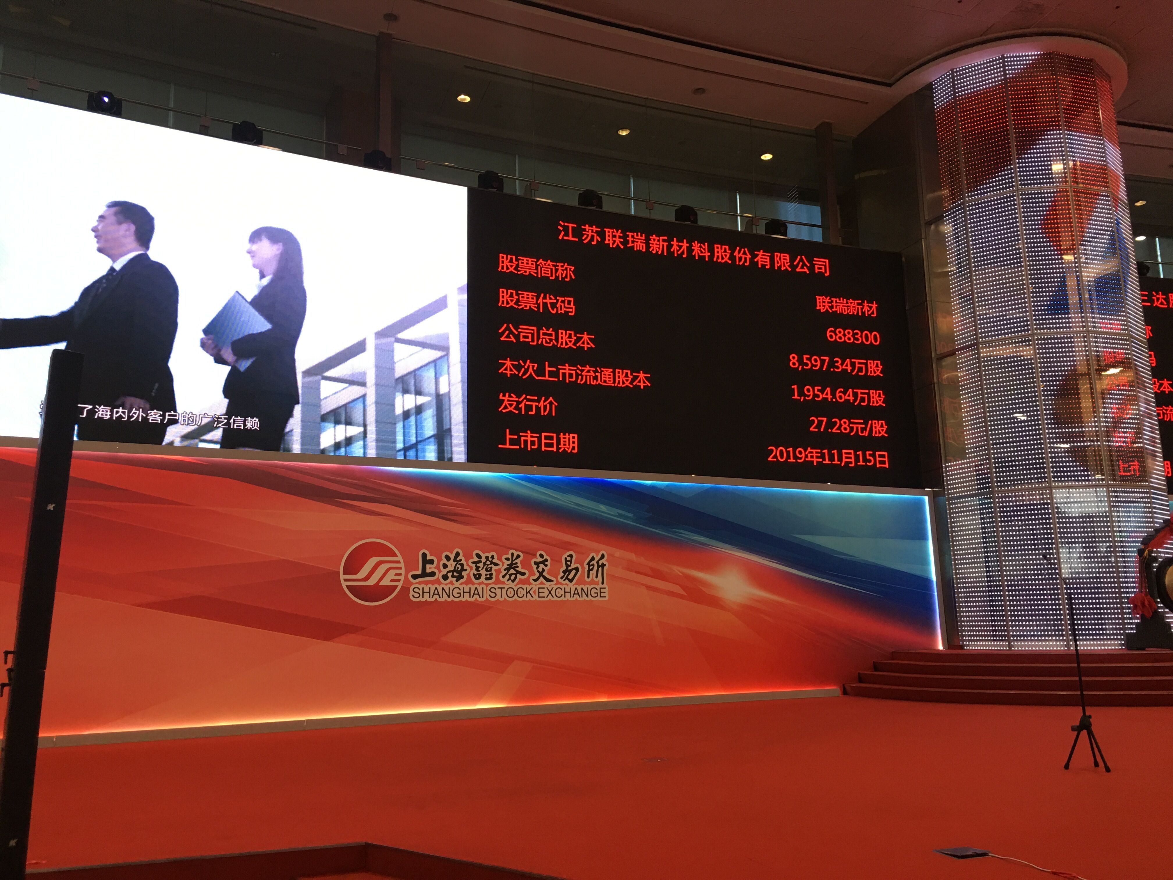 11月15日上午9時30分,工投集團產(chǎn)業(yè)基金投資企業(yè)——江蘇聯(lián)瑞新材料股份有限公司(以下簡稱“聯(lián)瑞新材料”)首次公開發(fā)行A股上市儀式于上海證券交易所舉行。集團公司黨委書記、董事長楊龍,資產(chǎn)管理公司有關(guān)人員受邀出席儀式。