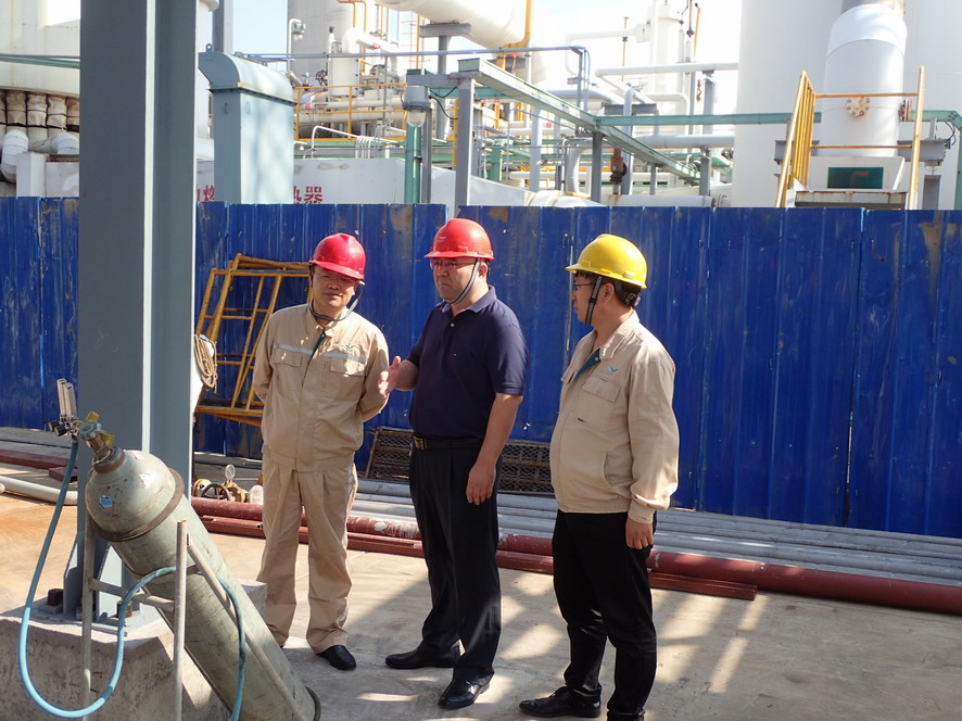 楊龍一行實(shí)地查看了氯堿公司氫氣純化技改項(xiàng)目、天然氣制氫壓縮機(jī)廠房現(xiàn)場(chǎng)和氨綸公司精制罐區(qū)、危廢庫(kù)等重點(diǎn)區(qū)域,就相關(guān)設(shè)備運(yùn)行、安全防范情況進(jìn)行詳細(xì)了解。楊龍強(qiáng)調(diào),新中國(guó)成立70周年即將到來(lái),要把安全工作當(dāng)成一項(xiàng)重要的政治任務(wù),認(rèn)真做好各個(gè)重點(diǎn)部位、關(guān)鍵裝置等環(huán)節(jié)的排查和治理,提高專業(yè)化水平,做到立行立改。要提高安全生產(chǎn)意識(shí),認(rèn)真落實(shí)好安全檢查、節(jié)假日應(yīng)急管理和值班制度,強(qiáng)化對(duì)設(shè)備的檢查維護(hù)和隱患整改,確保節(jié)日期間安全生產(chǎn)平穩(wěn)運(yùn)行。