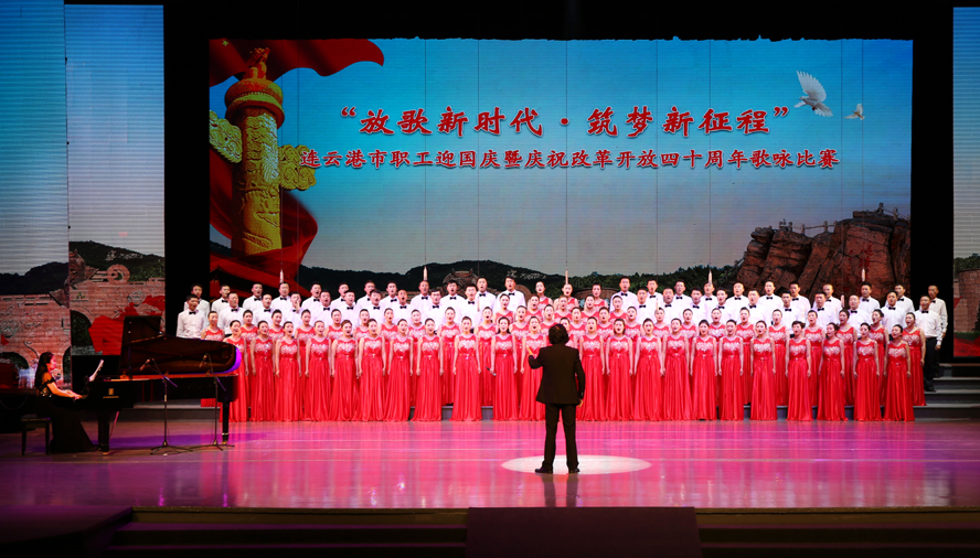 9月28日下午,由市委宣傳部、市總工會(huì)、市文廣新局聯(lián)合舉辦的“放歌新時(shí)代·筑夢(mèng)新征程”——連云港市職工迎國(guó)慶暨慶祝改革開放四十周年歌詠比賽在市藝術(shù)中心隆重舉行。來自各縣區(qū)、各條戰(zhàn)線的16支代表隊(duì)參加比賽,經(jīng)過3個(gè)多小時(shí)緊張角逐,集團(tuán)公司組織的100人合唱隊(duì)以《走向復(fù)興》、《天路》兩首激昂向上的歌曲脫穎而出,獲得一等獎(jiǎng)。