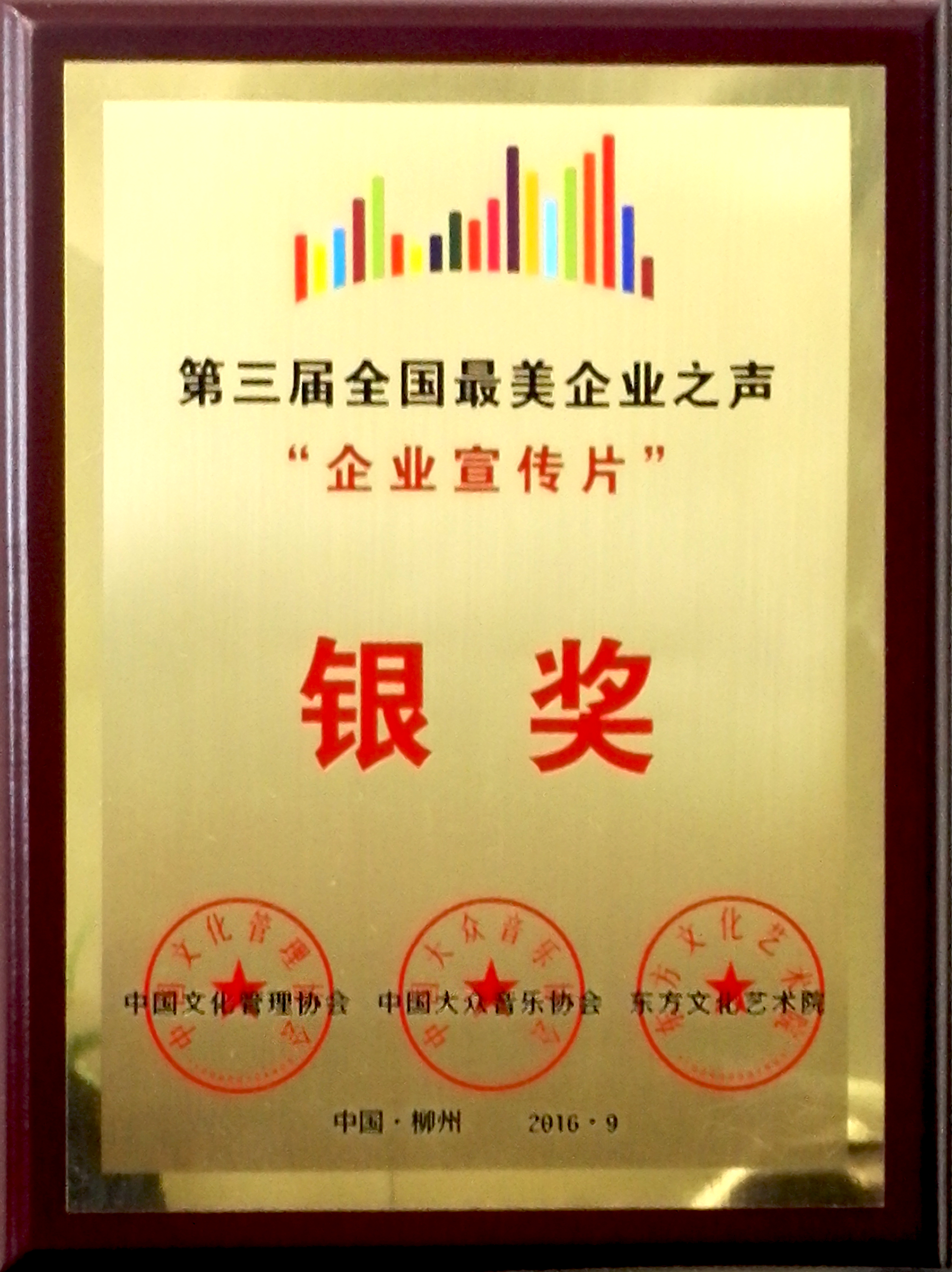 9月28日至29日,中國文化部直管的中國文化管理協(xié)會(huì)在柳州召開會(huì)議。會(huì)上,發(fā)布了“中國企業(yè)文化建設(shè)測(cè)評(píng)標(biāo)準(zhǔn)3.0”,對(duì)全國企業(yè)文化建設(shè)工作、企業(yè)歌曲、企業(yè)宣傳片等方面的先進(jìn)進(jìn)行了表彰。集團(tuán)公司獲得“企業(yè)黨建文化十強(qiáng)單位”,集團(tuán)公司精心設(shè)計(jì)制作的企業(yè)宣傳片《品質(zhì)工業(yè),精誠投資》,在全國選送參評(píng)的400余部宣傳片中脫穎而出,獲得銀獎(jiǎng)。