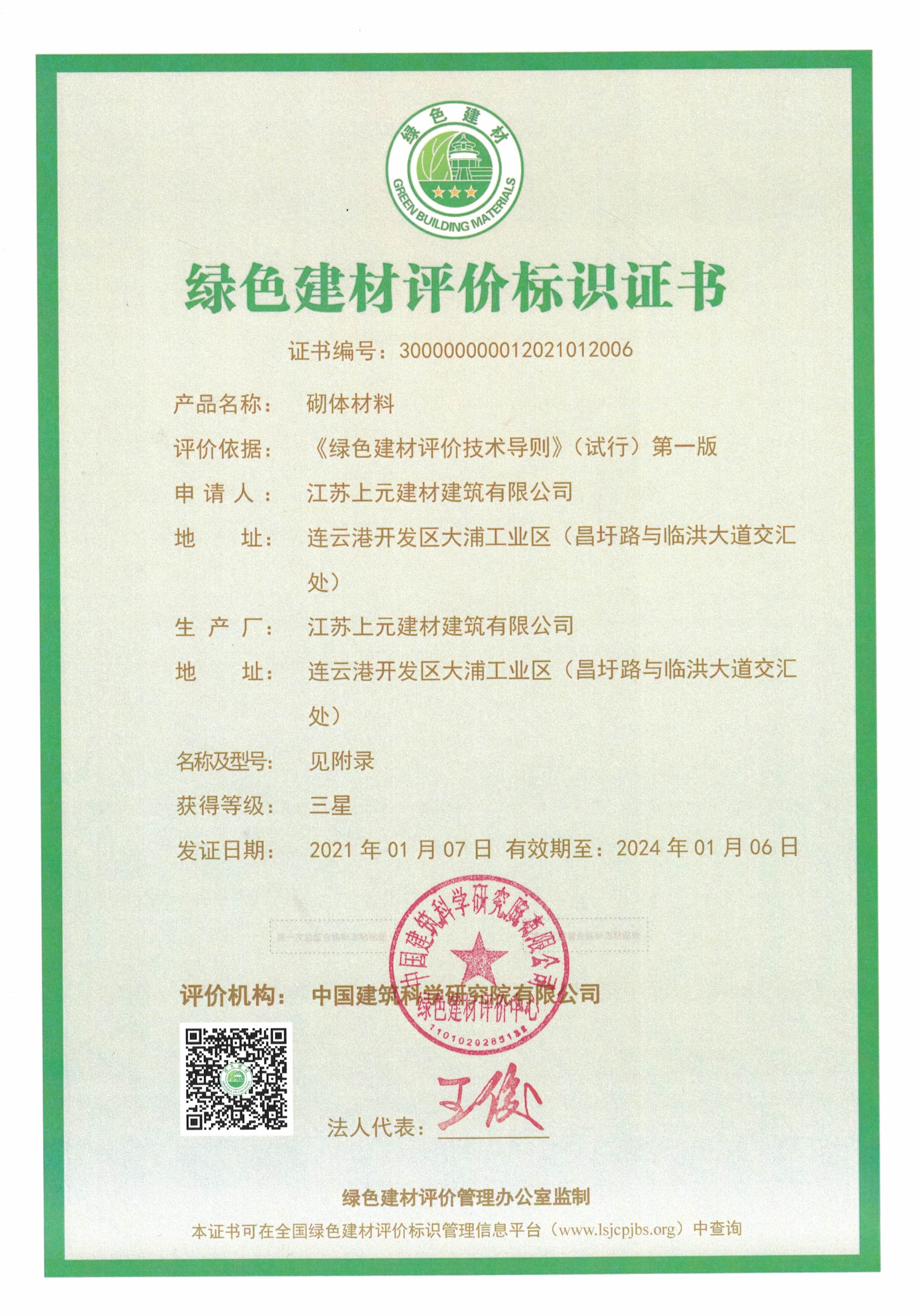近日,房地產(chǎn)上元建材建筑公司成功獲得國家三星級綠色建材評價標(biāo)識證書,為連云港市首家獲得該項榮譽的蒸壓加氣混凝土板(砌塊)類企業(yè)。