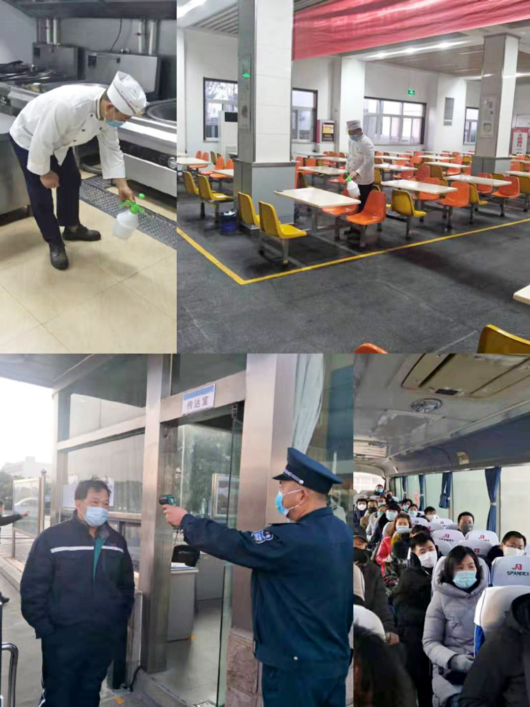 全力做到“三個全覆蓋”。一是消殺全覆蓋,做到無死角。結(jié)合疫情防控實施方案全面開展衛(wèi)生整治消殺,對進廠車輛、食堂、廁所、辦公區(qū)、操作平臺、作業(yè)電梯等進行全面消毒,每4小時進行噴灑消毒液消毒。二是摸排全覆蓋,做到無縫隙。以部門為單位進行全員摸排并建立日報制度。在公司門口使用溫度檢測儀器測量入廠人員體溫,體溫正常允許進入,發(fā)現(xiàn)體溫異常人員立即上報公司安全部或者值班領(lǐng)導執(zhí)行應(yīng)急隔離救援。對外地回廠人員,特別對疫區(qū)或途徑疫區(qū)的到廠人員進行重點摸排,對與武漢方面人員有接觸的員工采取暫停上班、居家隔離措施。三是宣傳全覆蓋,做到無遺漏。利用公司宣傳欄、紅色長廊、網(wǎng)站、公眾號、微信群等宣傳陣地開展宣傳培訓。將公司的防控措施、應(yīng)急預(yù)案、就醫(yī)流程、疫情防護等應(yīng)知應(yīng)會的防疫知識傳達到每一位員工,引導他們科學防疫。