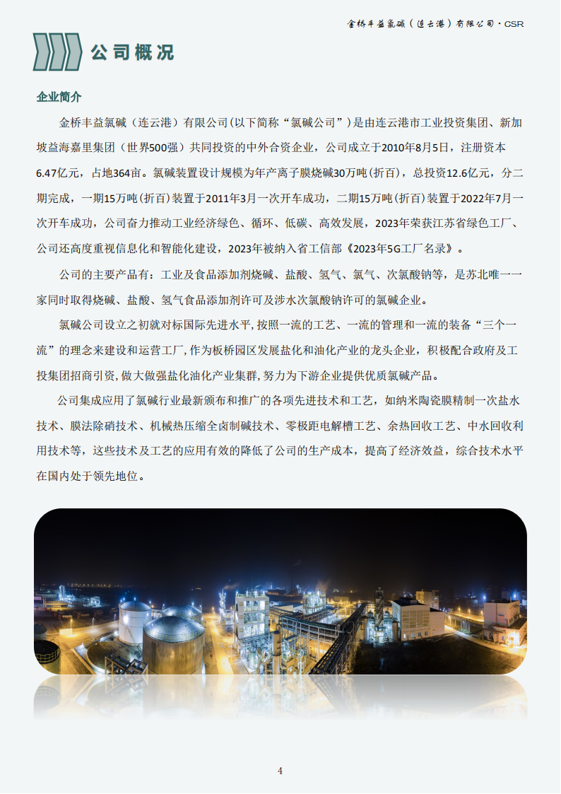 金橋豐益氯堿(連云港)有限公司2023年可持續(xù)發(fā)展報告公示