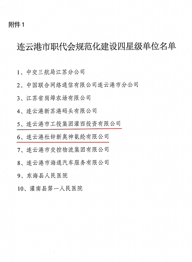 日前,從連云港市總工會傳來喜訊,我公司工會被授予“四星級職代會”榮譽(yù)稱號。