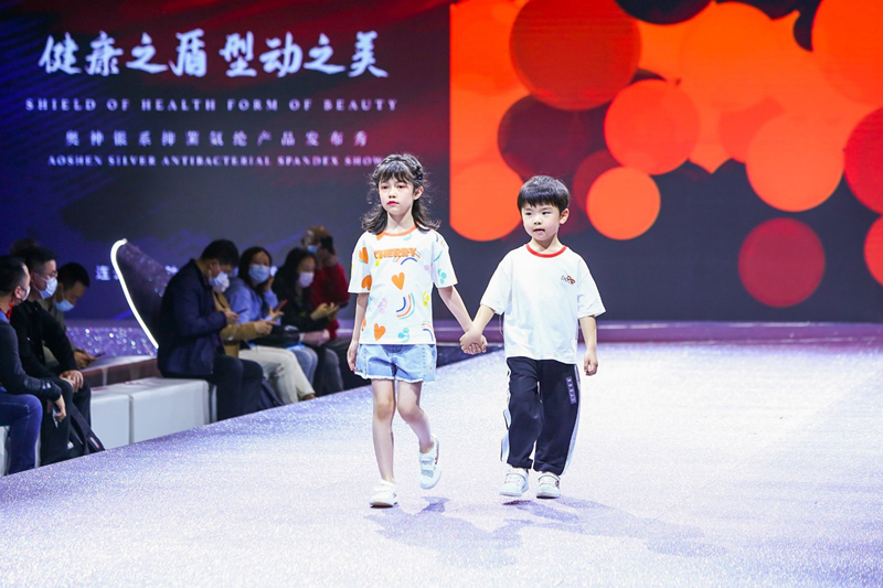杜鐘新奧神氨綸公司總經(jīng)理張斌向大家介紹了公司的發(fā)展歷程,并隆重推出新產(chǎn)品——銀系抑菌氨綸,指出其在性價(jià)比、環(huán)保、安全等方面獨(dú)特的優(yōu)勢(shì)和市場(chǎng)前景。下游客戶代表紅豆童裝、福建東龍針紡分享了使用奧神抑菌、驅(qū)蚊等功能性氨綸產(chǎn)品的經(jīng)驗(yàn)和體會(huì),并表示將與杜新奧神氨綸開(kāi)展長(zhǎng)期的戰(zhàn)略合作。最后,精彩的模特走秀完美演繹了兩家合作公司聯(lián)合推出的最新款的時(shí)裝、童裝及瑜伽類運(yùn)動(dòng)服裝。