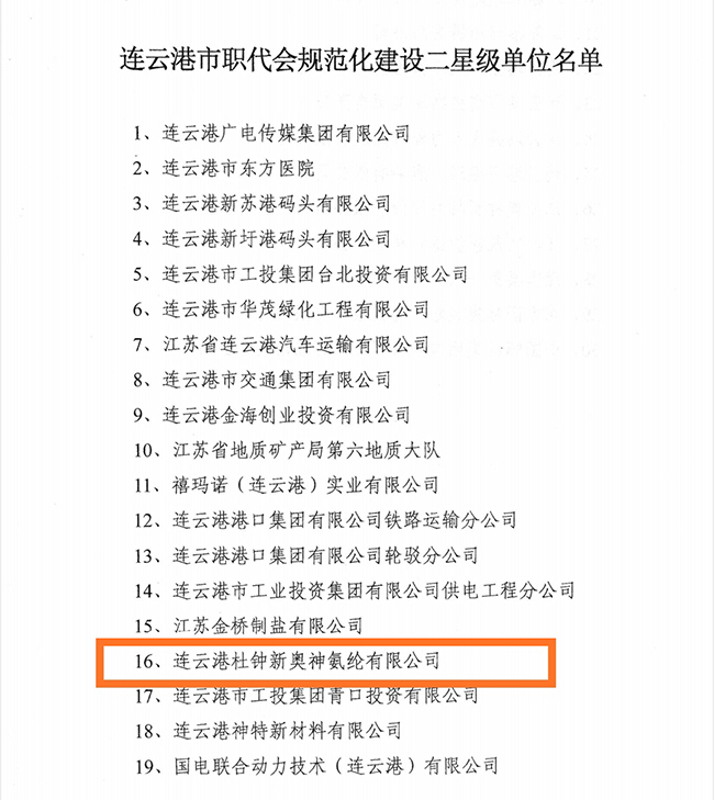 近期,連云港市總工會對全市各級職代會規(guī)范化建設(shè)表現(xiàn)突出的企事業(yè)單位進(jìn)行了表彰,公司榜上有名,獲評市“職代會規(guī)范化建設(shè)二星級單位”稱號。