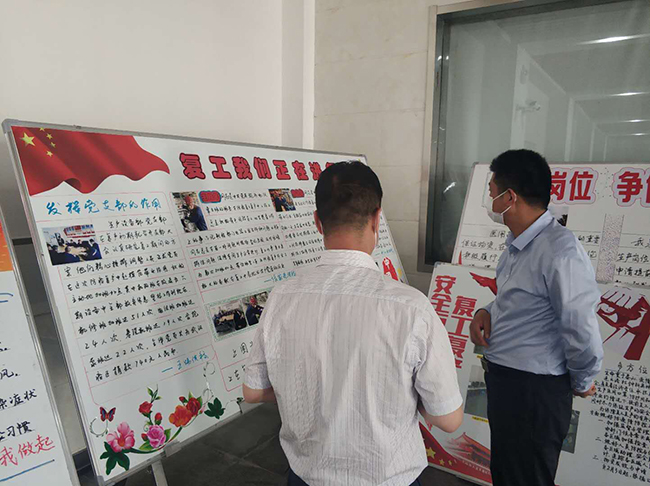 5月21日,公司開展了以“抗疫情•復(fù)工復(fù)產(chǎn)”為主題的板報評比活動。來自生產(chǎn)一部、生產(chǎn)二部、品保部、公用工程部、生產(chǎn)設(shè)備部、技術(shù)研發(fā)部以及管理部門的7個部門參加了評比。