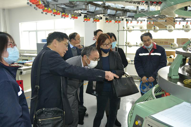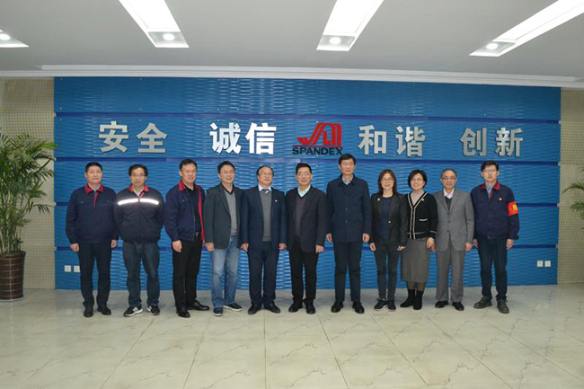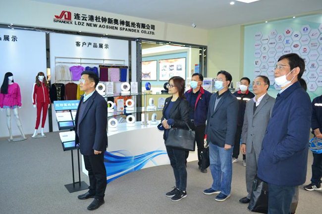 蔣教授一行先后參觀了公司產(chǎn)品展廳、八期生產(chǎn)線、研發(fā)中心,公司總經(jīng)理張斌對氨綸公司的發(fā)展歷程,差別化產(chǎn)品、戰(zhàn)略優(yōu)勢等進行了詳細(xì)介紹,蔣教授對氨綸公司低溫?zé)嵴澈习本]、抗菌氨綸、驅(qū)蚊氨綸及氨綸生產(chǎn)全流程自動化、智能化生產(chǎn)線等給予了高度評價。