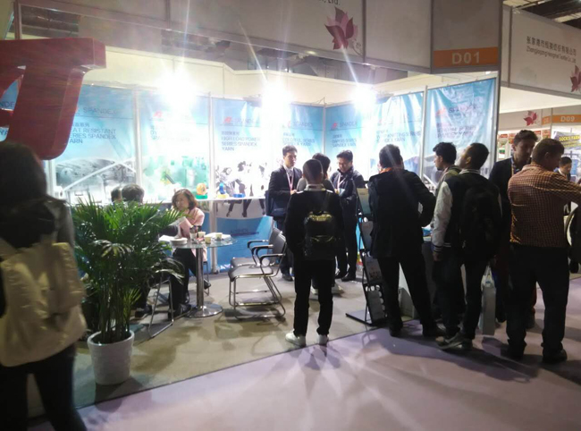 圖為奧神氨綸展位絡(luò)繹不絕的客戶