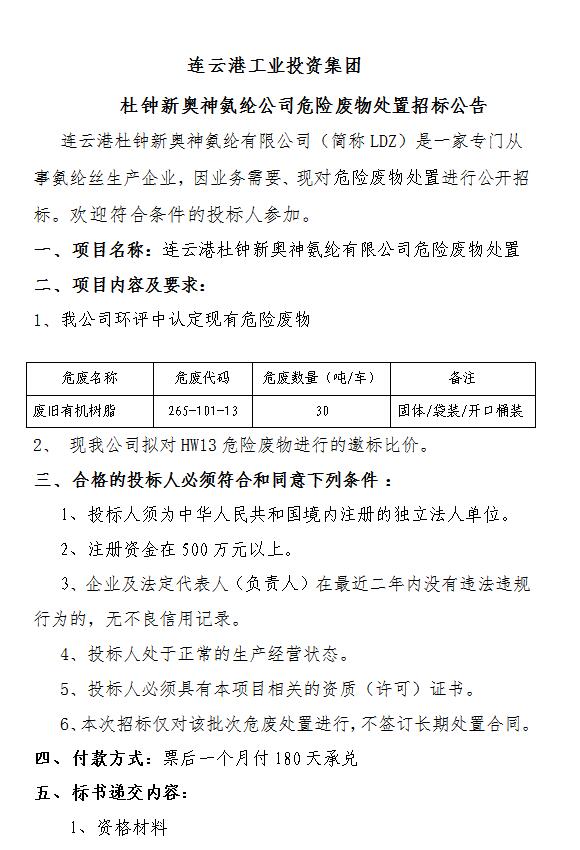 危險(xiǎn)廢物處置招標(biāo)公告