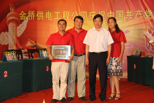6月29日,公司舉行紀(jì)念建黨90周年知識(shí)搶答賽,共有八支代表隊(duì)參加。經(jīng)過角逐,公司機(jī)關(guān)黨支部代表隊(duì)、灌西供電所黨支部代表隊(duì)和徐圩供電所黨支部代表隊(duì)分獲一、二、三等獎(jiǎng)。(司宣)