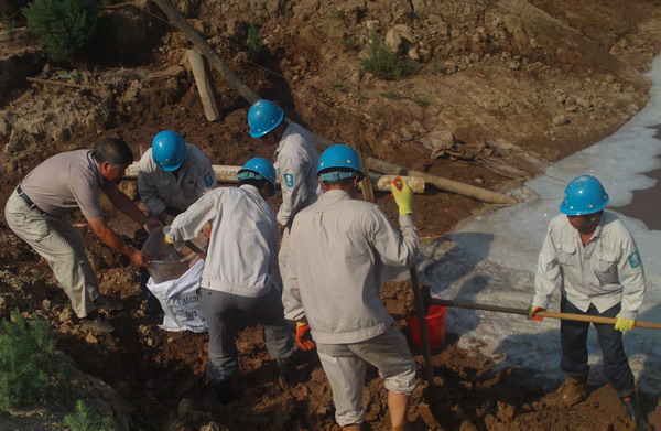 職工在準備防汛泥袋 8月1日,徐圩供電所落實公司防臺風緊急會議精神,積極做好臺風防御工作準備。 該所切實增強防臺風的責任感,迅速落實防御措施,對轄區(qū)內電力設施進行拉網式檢查,潛水泵、電線桿、應急燈、防汛泥袋等物資準備到位。加強24小時值班,堅守崗位,切實提高防汛抗災能力,確保供電。(馬德松)