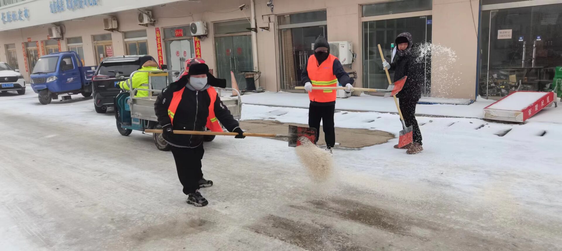 “紅色暖流”為守護(hù)“民生溫度”保駕護(hù)航。面對今年新春以來首個惡劣天氣的“大考”,公司廣大黨員以雪為令,聞雪而動,充分發(fā)揮黨組織戰(zhàn)斗堡壘作用和黨員的先鋒模范作用,帶領(lǐng)廣大員工浴“雪”奮戰(zhàn),組成應(yīng)急黨員突擊隊,應(yīng)對極端天氣造成的不利影響,24小時不間斷值守。對日曬制鹽區(qū)域、中二圩街道等主次干道12000余米進(jìn)行清雪除冰。同時,建立應(yīng)急隊伍工作群,旨在快速解決職工群眾關(guān)注的熱點和難點問題,不斷織密民生保障網(wǎng),用微服務(wù)暢通大民生,以小實事彰顯大擔(dān)當(dāng)。(西宣)
