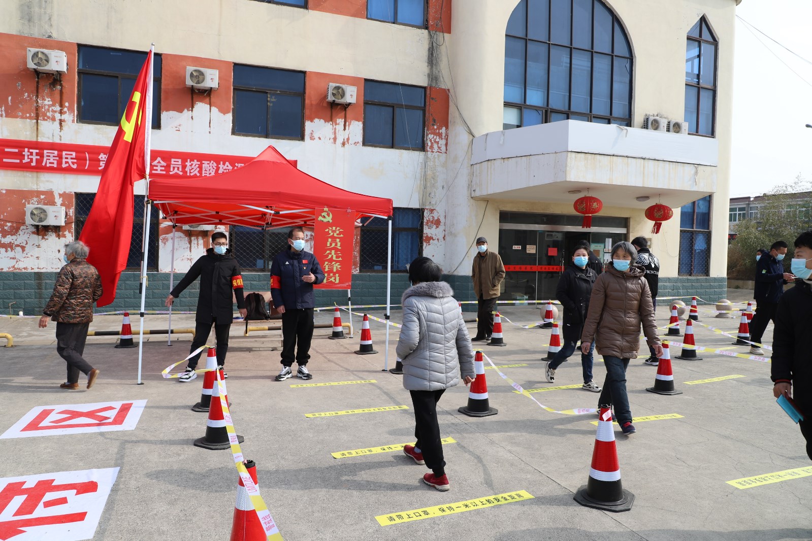 檢測現(xiàn)場,各單位組織黨員先鋒隊成員、社區(qū)志愿者不斷優(yōu)化現(xiàn)場服務(wù),提醒居民群眾提前出示“蘇康碼”,有序排隊,讓等待時間更短一點、人員距離更遠(yuǎn)一點、個人防護更好一點。另一方面,灌西檢測點開設(shè)老者、孕婦、兒童綠色通道,減少這部分人群排隊等候的時間,同時安排志愿者攙扶、幫助不會使用智能手機的老年人,確保他們順利完成核酸檢測。