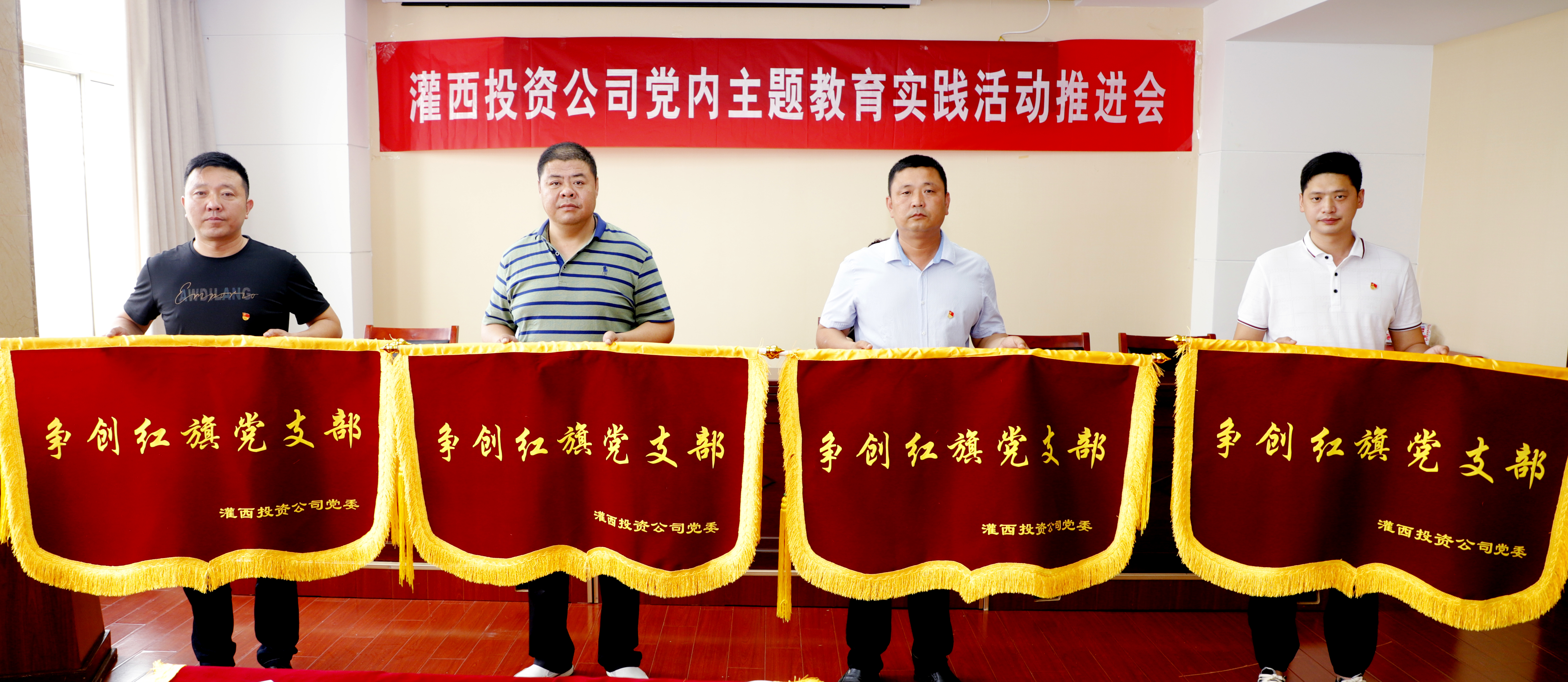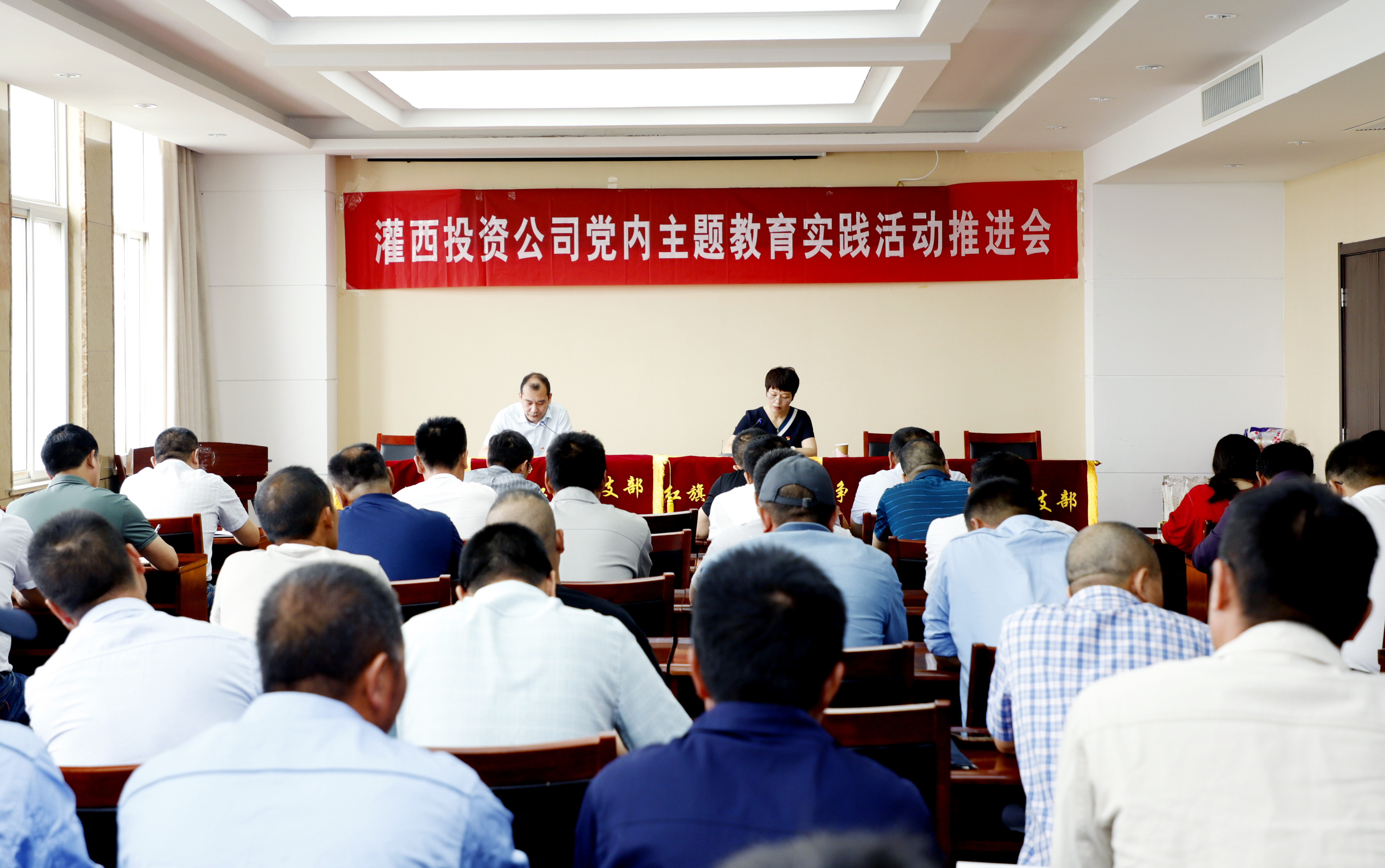 6月24日上午,灌西投資公司召開“黨旗在改革提質(zhì)中飄揚(yáng),黨性在創(chuàng)新增效中錘煉”黨內(nèi)主題教育實踐活動推進(jìn)會。公司黨委副書記、工會主席王宏、各支部書記及包片委員、機(jī)關(guān)黨群部門人員、部分黨員生產(chǎn)骨干參加會議。
