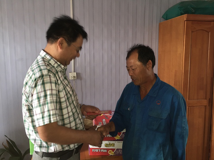走訪過程中,公司領(lǐng)導(dǎo)深入扒鹽現(xiàn)場,與員工親切交談,詳細了解生產(chǎn)、生活情況,并為他們送上月餅、方便面、雞蛋等價值1萬元的慰問品,并致以節(jié)日的問候。