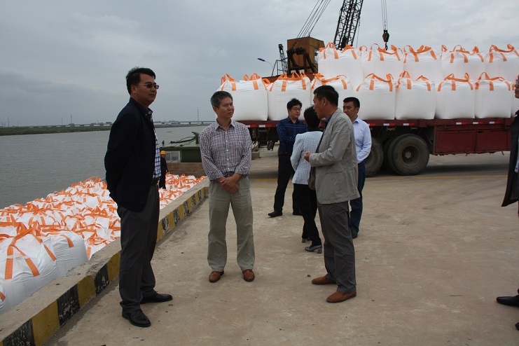 在五灌河碼頭現(xiàn)場,宵洋物流公司工人正忙于裝卸作業(yè),將車輛上化工產(chǎn)品噸袋物資吊裝下船艙,喻振東副局長一行首先到碼頭現(xiàn)場視察碼頭的生產(chǎn)建設(shè)情況,隨后到投資公司三樓會議室進(jìn)行了座談。
