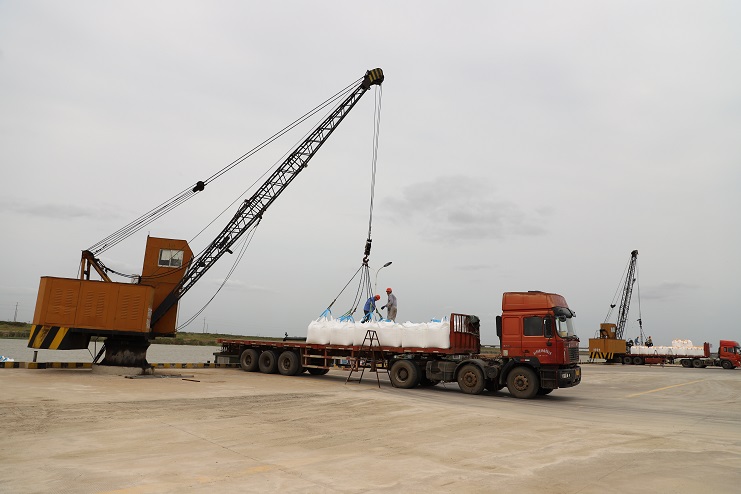 這兩天,家家戶戶都在享受著雙節(jié)來(lái)臨的喜悅,然而來(lái)自宵洋物流公司五灌河碼頭的全體員工卻沒(méi)有閑著。十月三日,天氣稍有好轉(zhuǎn),碼頭上就瞬間忙碌起來(lái),裝運(yùn)噸袋的車輛來(lái)來(lái)回回、一輛接著一輛。工人們也按照事先分配好的工作任務(wù)有條不紊的進(jìn)行著掛鉤、轉(zhuǎn)運(yùn)、解勾等工作流程,讓每一包噸袋都準(zhǔn)確無(wú)誤的碼放在船艙內(nèi)。
