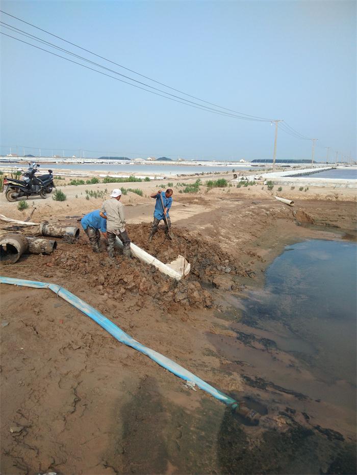 由于灘內土塘老出籠銹蝕損壞,淤泥堵塞,不便于土塘水互相調用,原先班組主要是用機泵進行調水,增加了費用的支出,因此新河制鹽公司對16個班組的原有土塘節(jié)制全部更換成塑料彎頭,這種新型節(jié)制在使用中不易堵塞,封閉好,操作簡便,工人們正在按照公司的要求搶時間把彎頭裝好。(新河制鹽趙斯中)