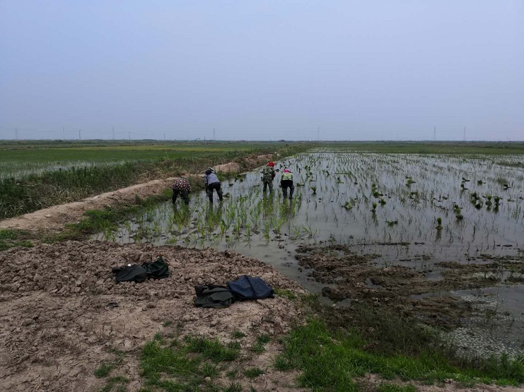 為了切實(shí)做好當(dāng)前稻田抗旱工作,保障水稻正常發(fā)育生長(zhǎng),盡可能把斷水干旱造成的損失降到最低程度,明威公司領(lǐng)導(dǎo)班子帶領(lǐng)公司全體成員來(lái)到路北分公司組織補(bǔ)救受損田塊,開展補(bǔ)秧工作。(明威張志超)