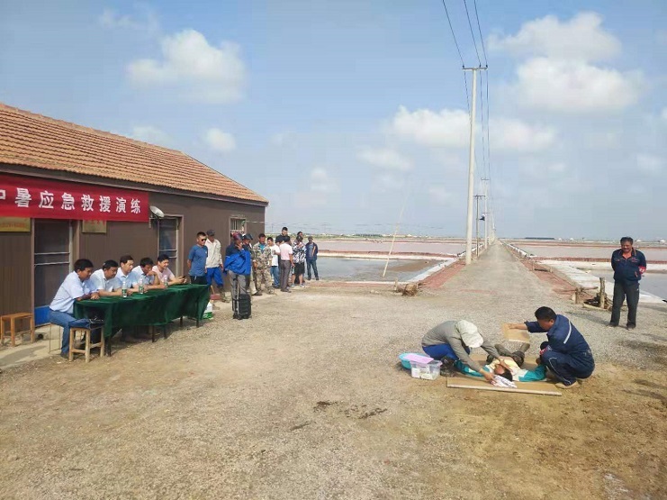 為了貫徹落實(shí)灌西投資公司“安全生產(chǎn)月”活動,7月9號在埒南制鹽分公司八班舉行應(yīng)急演練,學(xué)習(xí)中暑急救等安全救援知識。明威公司分管安全領(lǐng)導(dǎo)徐永年與安全員胡繼軍參與演練學(xué)習(xí)。(明威 ?,?