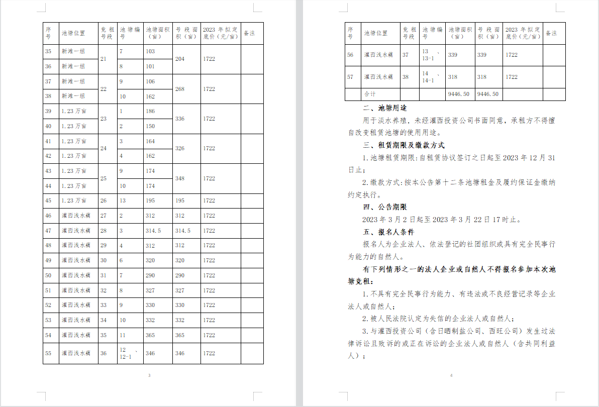 連云港市工投集團(tuán)灌西投資公司2023年度淡水養(yǎng)殖池塘公開競(jìng)租公告