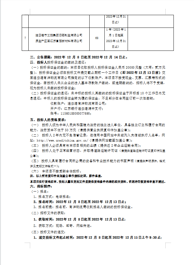 連云港宵洋物流有限公司原鹽車(chē)輛運(yùn)輸項(xiàng)目招標(biāo)公告
