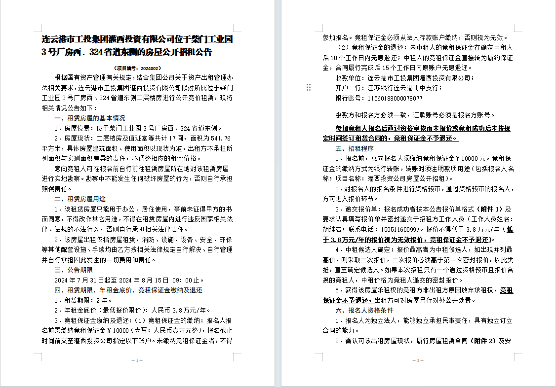附件1:房屋招租報(bào)價單