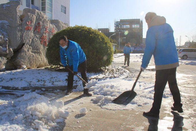12月29日,連云港市各地普降大雪,氣溫低、積雪厚、道路結(jié)冰,給公司職工的安全出行和生產(chǎn)生活帶來(lái)很多不便。29-30日,公司領(lǐng)導(dǎo)朱桂玉、曹開(kāi)明、田磊、何啟明、邵琴、李忠祥帶領(lǐng)廣大職工群眾開(kāi)展了義務(wù)掃雪活動(dòng)。大家冒著風(fēng)雪,不畏嚴(yán)寒,對(duì)路面積雪進(jìn)行清掃,鏟除了廠區(qū)主干道的冰層,保障了公司職工安全出行和安全生產(chǎn)工作的開(kāi)展。(金宣)