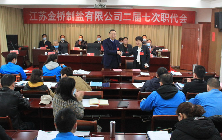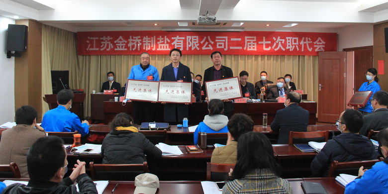 大會簽訂了《2020年度集體合同》、《2020年度經(jīng)營認標責(zé)任書》,與會代表認真審議通過了總經(jīng)理工作報告,通過了大會決議、有關(guān)方案和意見。加工鹽車間、包裝鹽車間、銷售部依次作了表態(tài)發(fā)言。大會表彰了第八屆“金橋杯”勞動競賽、2019年“大干四季度”勞動競賽的先進單位、先進部室、先進班組和先進個人。(金宣)