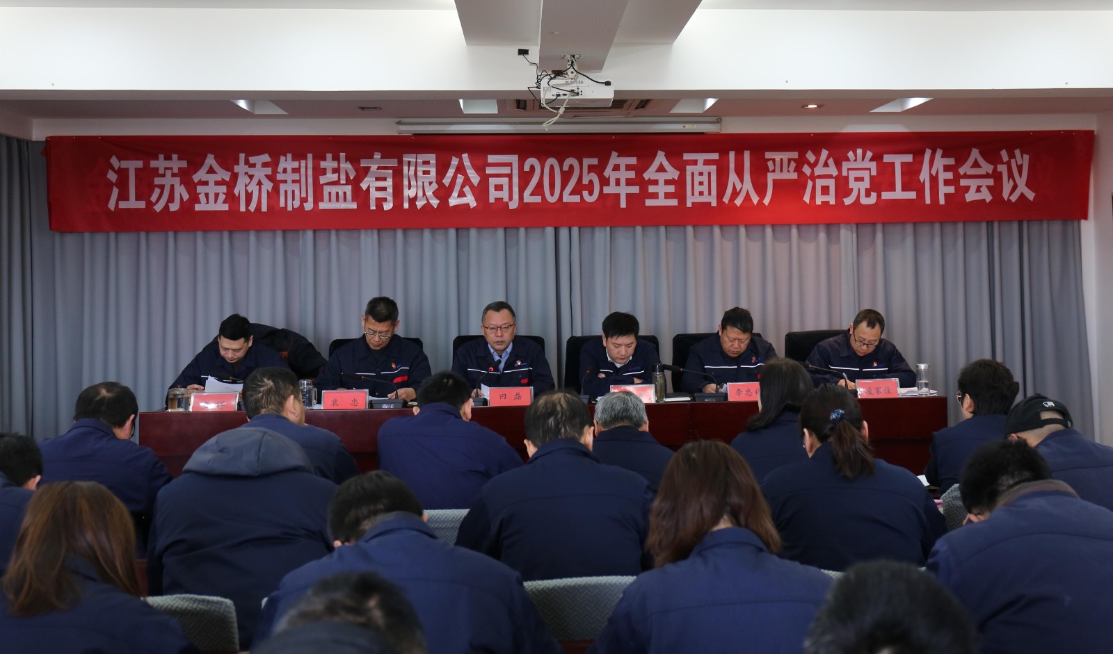 2月14日,金橋制鹽公司黨委召開2025年全面從嚴治黨工作會議,回顧總結(jié)2024年全面從嚴治黨工作,安排部署2025年重點任務,堅定不移推動公司高質(zhì)量發(fā)展。公司黨委書記田磊作黨委工作報告,紀委書記袁忠作紀檢監(jiān)察工作報告,常務副總經(jīng)理薛化光主持會議。