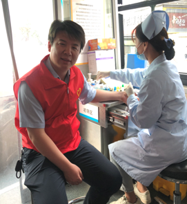 一大早,參加無償獻血的同志來到世紀華聯(lián)門口,秩序井然的排在獻血車前,等候醫(yī)生進行血壓、脈搏等基礎檢查,并填寫相關表格。經過仔細的體檢篩查,血液符合獻血要求的人,依次進入獻血區(qū),獻上了寶貴的血液。