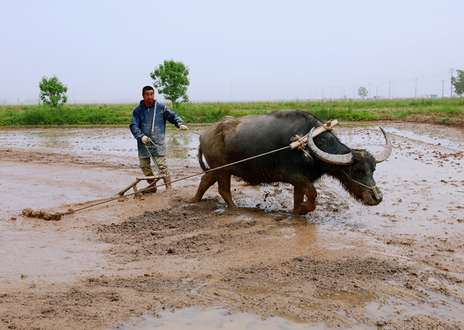 ▲不用揚(yáng)鞭自奮蹄,深耕細(xì)作促生產(chǎn)。田間還會(huì)遇見牛蹄疾步穩(wěn)、耕地拖平難得一見的傳統(tǒng)生產(chǎn)場面,對(duì)于小部分高低不平的田塊用牛找平較為方便,保證了在春耕各環(huán)節(jié)上做到精益求精。(仲偉彬、劉 楊)