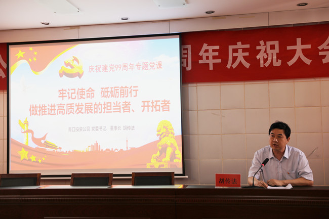 為了慶祝中國共產(chǎn)黨建黨99周年,繼承和發(fā)揚黨的光榮傳統(tǒng),彰顯基層黨組織的戰(zhàn)斗堡壘作用和黨員先鋒模范作用,6月28日上午,青口投資公司隆重召開紀念建黨99周年慶祝大會暨“七一”表彰大會。會議由黨委副書記、工會主席梁永主持,全體領導班子成員、各單位黨政負責人、優(yōu)秀黨員代表、機關全體管理人員參加會議。