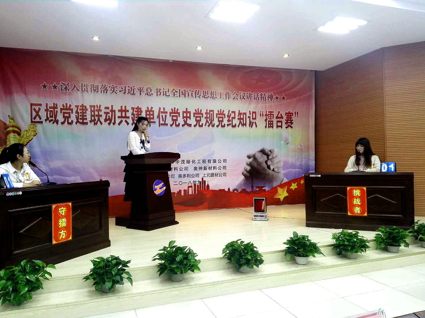 近日,華茂公司邀請神特公司、奧神新材料公司等5家區(qū)域黨建聯(lián)動共建單位,進(jìn)行黨史黨規(guī)黨紀(jì)知識“擂臺賽”。我公司積極準(zhǔn)備,派出員工何曉璐、李筠涵參加比賽。本次活動拉開了區(qū)域黨建聯(lián)動共建的序幕,促進(jìn)了兄弟單位間的資源共享、融合互動,為下一步工作推進(jìn)打下了良好基礎(chǔ)。