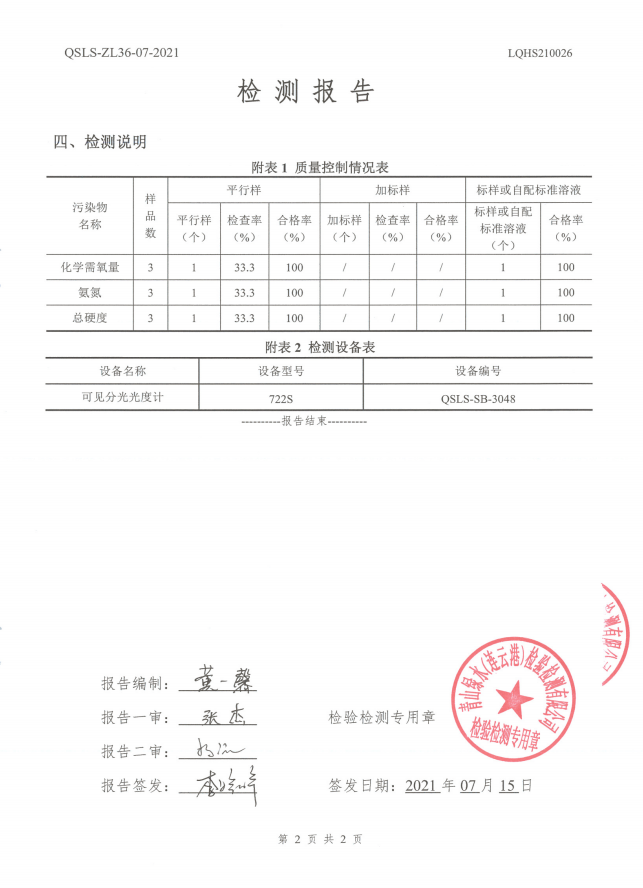 神特公司檢測報告公示