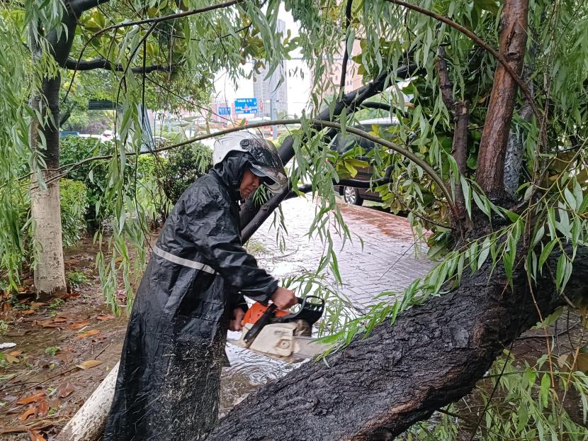 綠化分公司全力以赴筑牢汛期“安全網(wǎng)”,迅速開展應急處理,加大現(xiàn)場巡查力度,及時進行排澇清淤、樹木扶正、強基加固,全力排除險情,保障樹木、苗木安度汛期。截至20日17時,出動巡查人員 56人次,巡查車、高架車、貨車等車輛 24車次,扶正移栽倒伏樹木 70 株,修剪斷枝 12株,加固支撐168株。對云池路、玉竹路、匯晶路等22處路段排澇清淤,及時消除轄區(qū)內(nèi)安全隱患,保障了市民出行安全,鞏固了城市綠化成果。