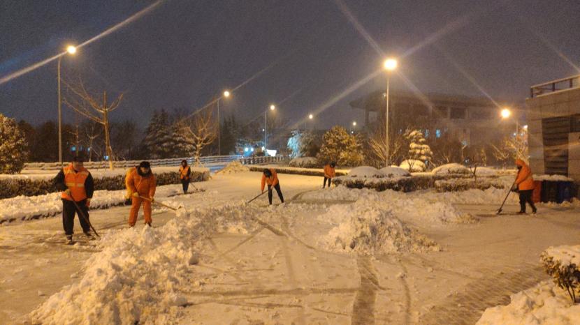 上午10時許,暴雪如約而至。裝有融雪劑的車輛全部整裝待發(fā),聞令而動,采取“人工+機械”不間斷作業(yè)模式,對轄區(qū)主次干道、橋涵、火車站東站、創(chuàng)智大廈等帶坡路段及時拋撒融雪劑,采取“滾刷+鏟車”組合方式,反復(fù)排掃路面積雪,確保主次干道、帶坡路段通暢無冰。