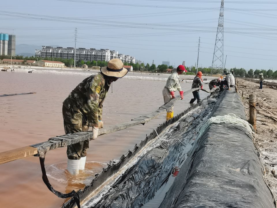 礦鹽生產(chǎn)班組提前謀劃原鹽集運前的準(zhǔn)備工作。2022年秋扒鹽已經(jīng)順利落下帷幕,工人們利用收鹽后的空隙對鹽池板進(jìn)行修整、整理收放系統(tǒng)以及將扒鹽機(jī)械進(jìn)行保養(yǎng)入庫等等。同時,修整運鹽主干道,地基較軟處以鋼板鋪墊,確保運鹽車輛安全通過。排查廩基周圍高低壓線路,在作業(yè)的同時堅守安全生產(chǎn)底線。等待天氣轉(zhuǎn)好,將立即進(jìn)行原鹽集運。