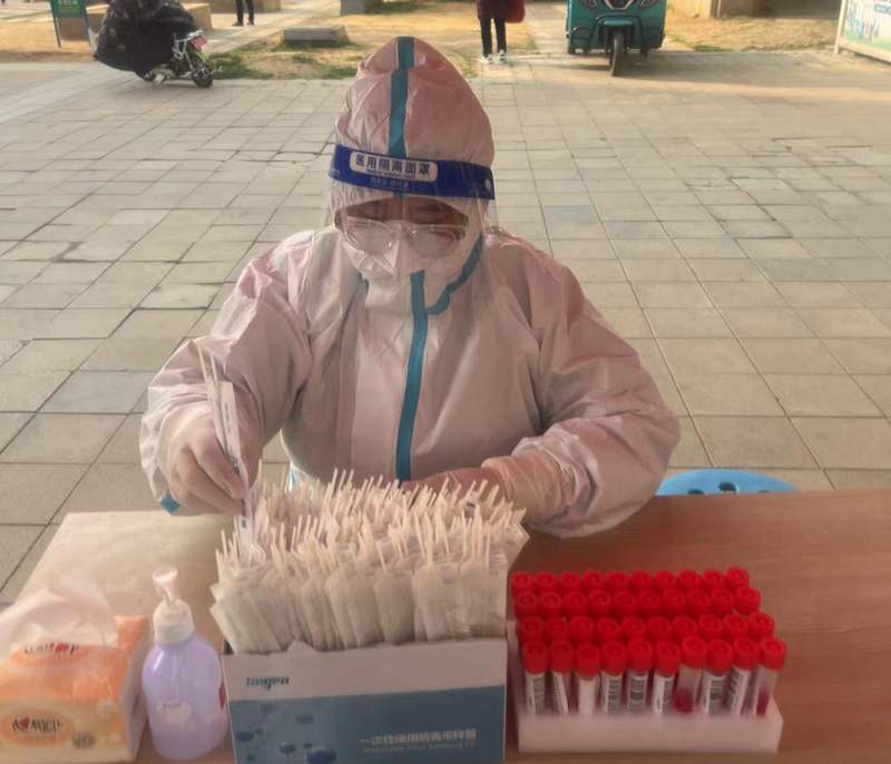? 9:00,所有人員就位,我也開始了我的“大白”體驗(yàn)課,工作就是核對身份與二維碼一致,并進(jìn)行拍照采樣。身穿防護(hù)服,站到崗位上,面前就是群眾,心中滿腔責(zé)任感,使命感。