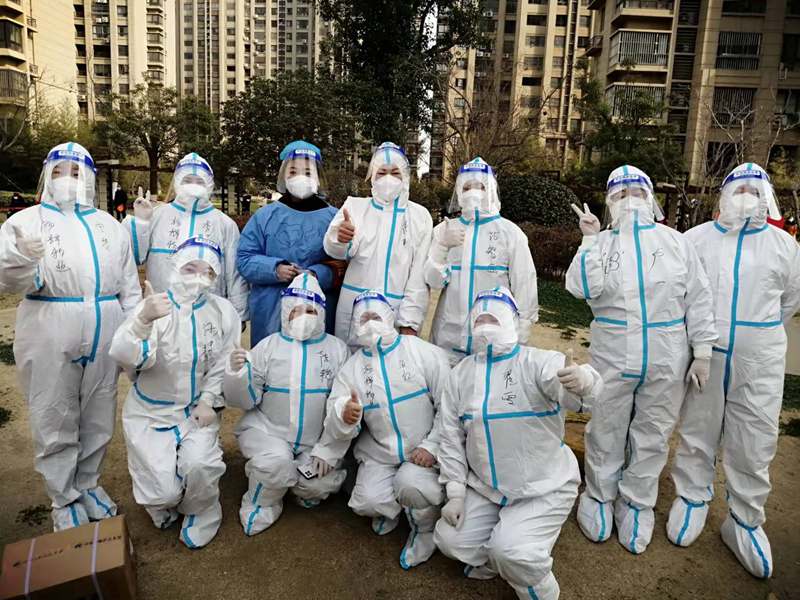 ? 3月12日,晴,8:00到達(dá)社區(qū)核酸采樣點(diǎn),準(zhǔn)備上崗,社區(qū)負(fù)責(zé)人給我們進(jìn)行了“防護(hù)服穿脫”及防疫知識的講解學(xué)習(xí)等一系列十分細(xì)致地培訓(xùn)后,有點(diǎn)興奮的穿好“大白服”,帶上手套、頭套和面罩,社區(qū)阿姨還幫我在衣服上畫上了可愛的涂鴉;