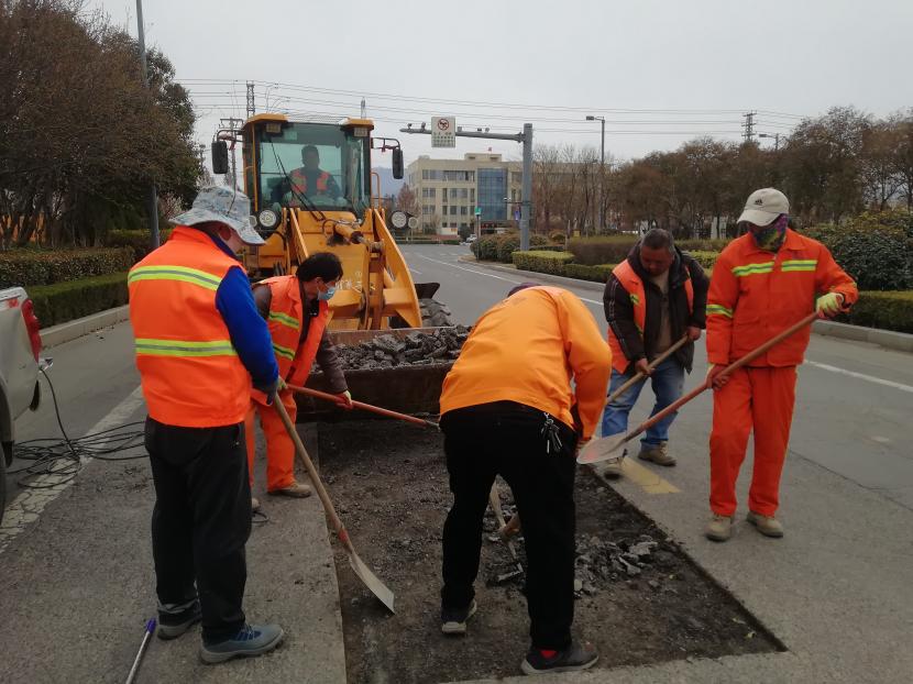 由于轄區(qū)路段長期受到日曬雨淋、重型車輛碾壓等因素影響,出現(xiàn)坑槽、裂痕等情況,不僅影響路面美觀,也存在很大安全隱患。為盡快給群眾提供一個良好的出行環(huán)境,盛達市政分公司于16日,放棄周末休息時間,加班加點,對轄區(qū)路面坑槽進行修補。