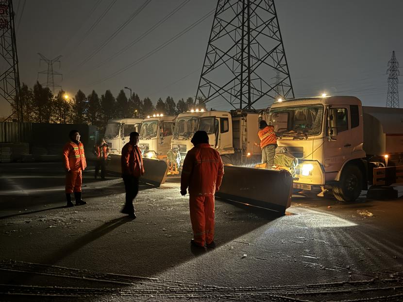 “搖人,快搖人”。環(huán)衛(wèi)分公司迅速響應(yīng)并于凌晨1點(diǎn)01分緊急啟動掃雪除冰應(yīng)急預(yù)案,全力以赴迎戰(zhàn)風(fēng)雪。