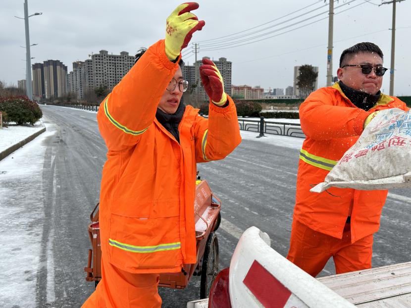 本次掃雪除冰共配備了3輛清掃車、2輛鏟車、1輛撒布機(jī)以及20余噸融雪劑,20余把推雪鏟、鐵鍬等清雪工具,采取“邊下邊除、邊除邊清、邊清邊運(yùn)”的方式,根據(jù)道路積雪厚度和結(jié)冰情況,通過撒布融雪劑、除雪鏟推雪、人工配合等多措并舉,有效清理區(qū)內(nèi)主干道積雪,做到“即下即掃、雪停路清”,保障群眾出行安全。此外,針對紅綠燈路口、馬路轉(zhuǎn)彎處、陡坡、橋面以及非機(jī)動車道等重要節(jié)點(diǎn),環(huán)衛(wèi)分公司又出動了100余名工作人員點(diǎn)對點(diǎn)人工撒布融雪劑,共保障面積300余萬平方米。