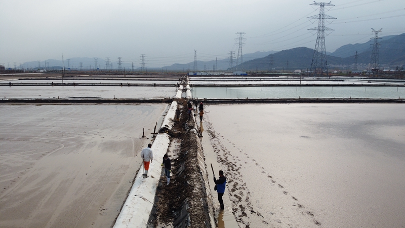 此時正是春曬制鹽的“黃金期”,海州灣公司獲知情況后,主動帶領(lǐng)全體員工組成“突擊隊”為兄弟單位“減負”,在大家共同努力下長約1200米的池堰一上午修整完畢,為下一步的池內(nèi)壓實及早日灌池贏得了寶貴的時間。