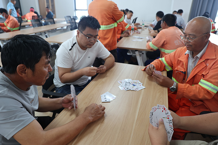 工會結(jié)合實際制定了豐富多樣的活動方案,確?;顒佑薪M織、有計劃的進行。摜蛋比賽現(xiàn)場,大家熱火朝天,聚精會神;臺球桌上,每個球在選手的操控下有方向的進行“博弈”,整個比賽現(xiàn)場既緊張又充滿樂趣。最終,劉樹平、韓中成獲得了摜蛋比賽一等獎