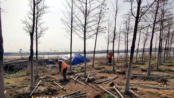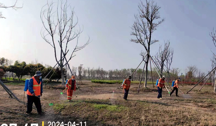 積極澆灌返青水。當(dāng)前,地溫回升快,苗木易萌芽,該班組采用“人工+機(jī)械”相結(jié)合的方式,全面啟動(dòng)返青水集中澆灌工作,重點(diǎn)對(duì)園區(qū)喬木、果木、草坪等進(jìn)行全面灌溉,促進(jìn)苗木、草坪返青發(fā)芽。按照分種類、合理澆灌的原則,采取集中澆灌的方式最大限度減緩晝夜溫差對(duì)綠化植物的影響,入春后共澆水100余次,對(duì)落羽杉圓動(dòng)力灌根2000棵,對(duì)大樹澆水1500棵,綠化澆水約30000平方米。