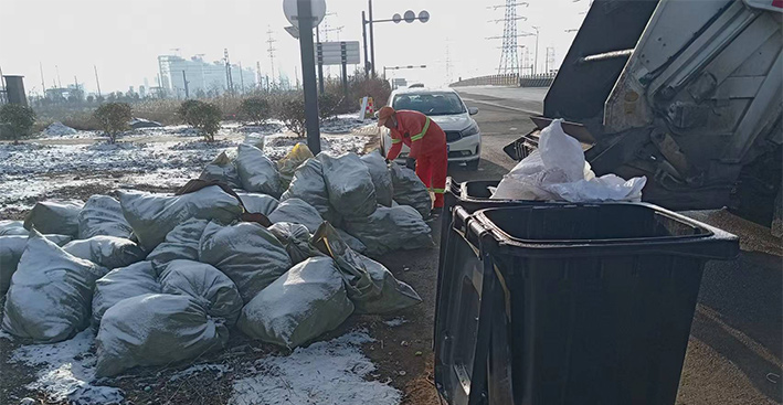 早上六點(diǎn),在徐圩新區(qū)垃圾轉(zhuǎn)運(yùn)站,環(huán)衛(wèi)分公司垃圾清運(yùn)班組班長(zhǎng)羅海軍正在等著垃圾收運(yùn)中轉(zhuǎn)車的到來(lái)。他說(shuō):“知道昨晚下雪了,今天我們提前一小時(shí)就上崗了,以防因?yàn)榈缆窛窕绊懯者\(yùn)效率?!?據(jù)統(tǒng)計(jì),在持續(xù)低溫時(shí)段,他們每天清運(yùn)生活垃圾高達(dá)15噸,清理轉(zhuǎn)運(yùn)各類果皮箱垃圾達(dá)200余個(gè)及19家企業(yè)(單位)的垃圾桶,并同步負(fù)責(zé)裝運(yùn)由道路保潔工人撿拾定點(diǎn)擺放在路邊的近500包袋裝垃圾。(何春林)